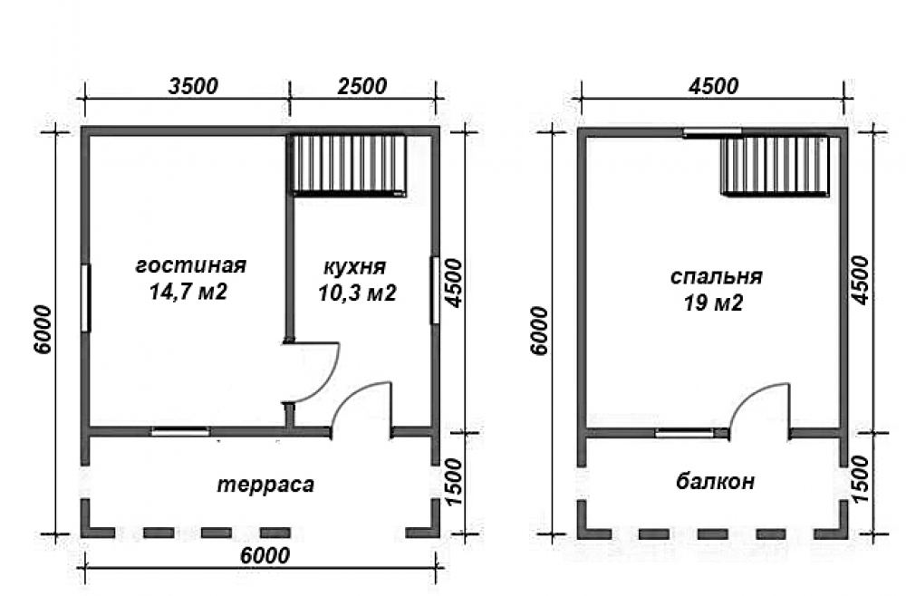 Проект одноэтажного дома Дом из бруса 6 х 6