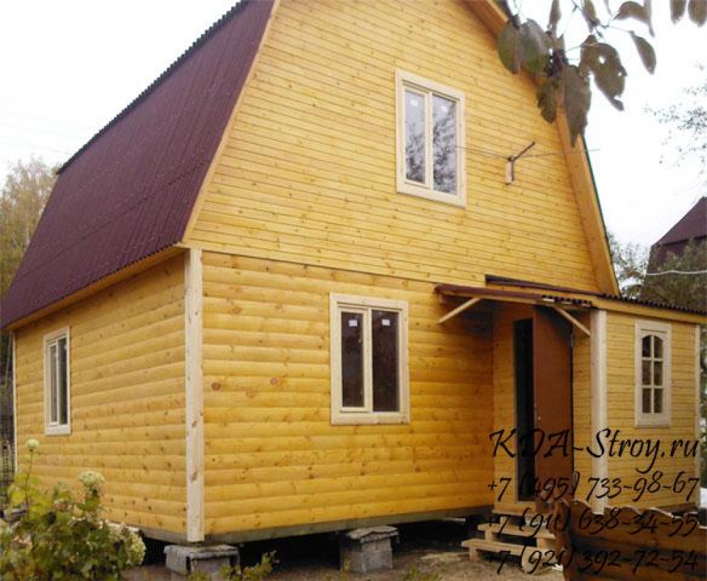 Проект одноэтажного дома Дом из бруса 6х6 с мансардой, крыльцом и ломаной крышей ДБ-9