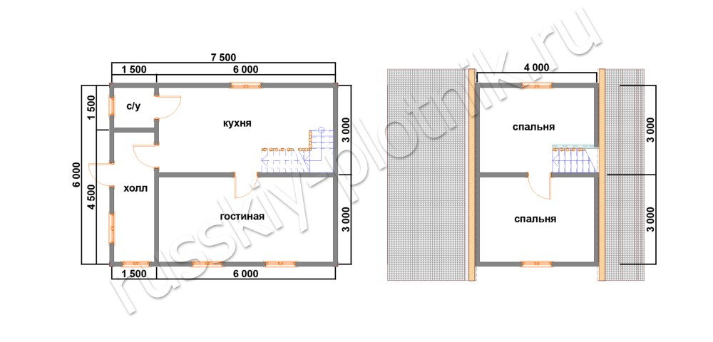 Проект двухэтажного дома Дом из бруса 6х7,5 (8БР)