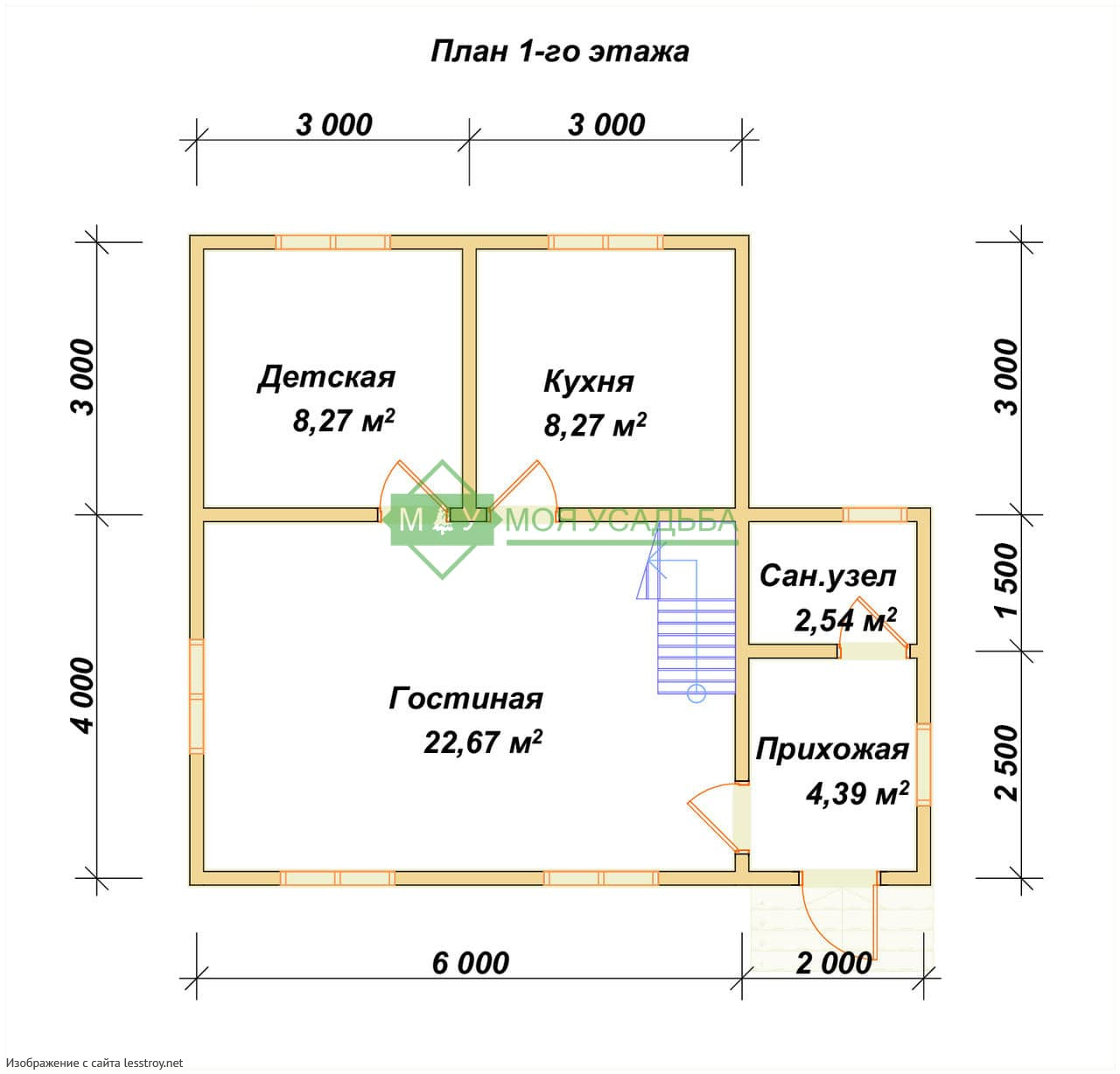Проект одноэтажного дома Дом из бруса 6х7 с тамбуром и туалетом ДБ-43