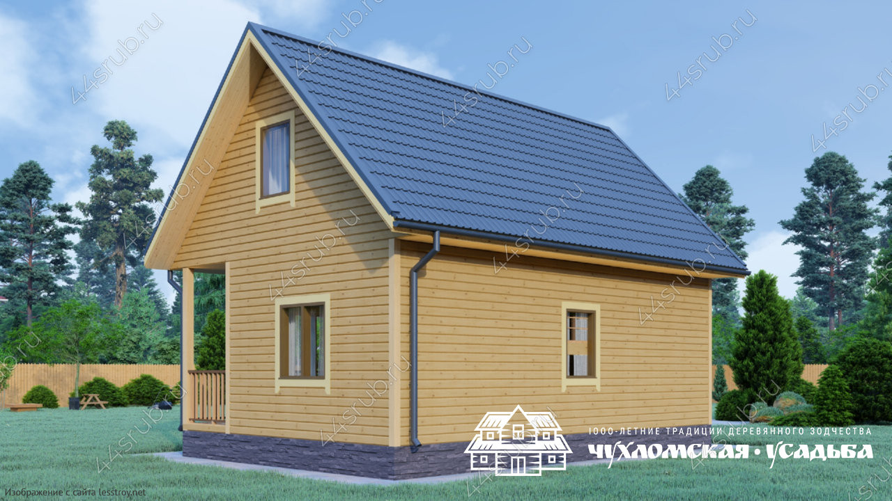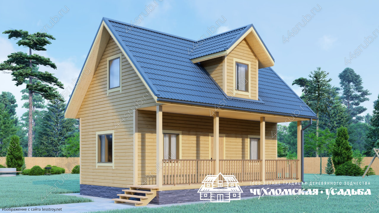 Проект одноэтажного дома Дом из бруса 6х8 по проекту Березка с кукушкой на мансарде