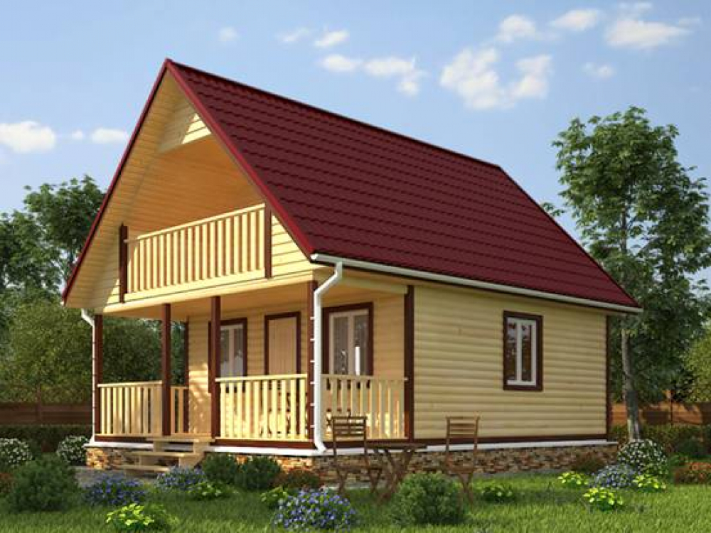 Проект двухэтажного дома Дом из бруса 6х8 с террасой и балконом (Новгород)