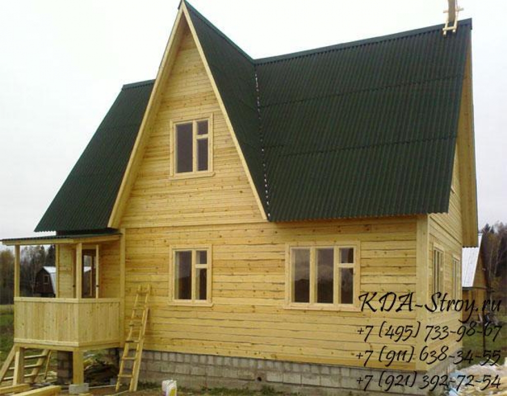 Проект одноэтажного дома Дом из бруса 6x9 с мансардой, верандой и крыльцом ДБ-8