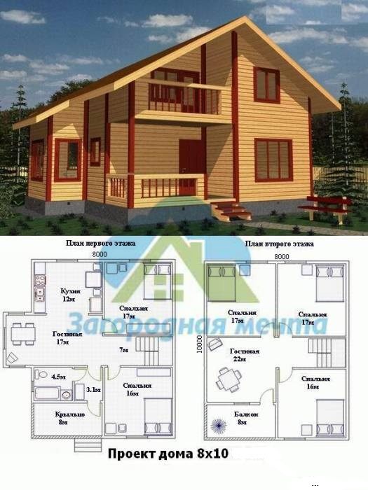 Проект одноэтажного дома Дом из бруса 8х10м..Проект 52Бр