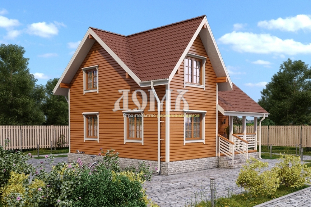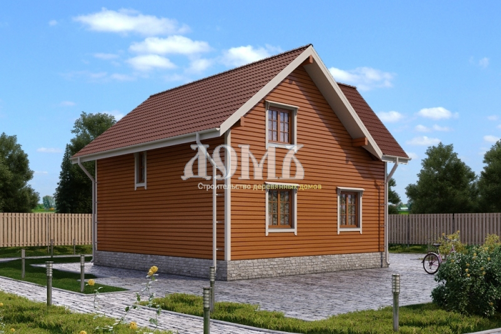 Проект двухэтажного дома Дом 6х8 м с мансардной крышей и кухней-гостиной