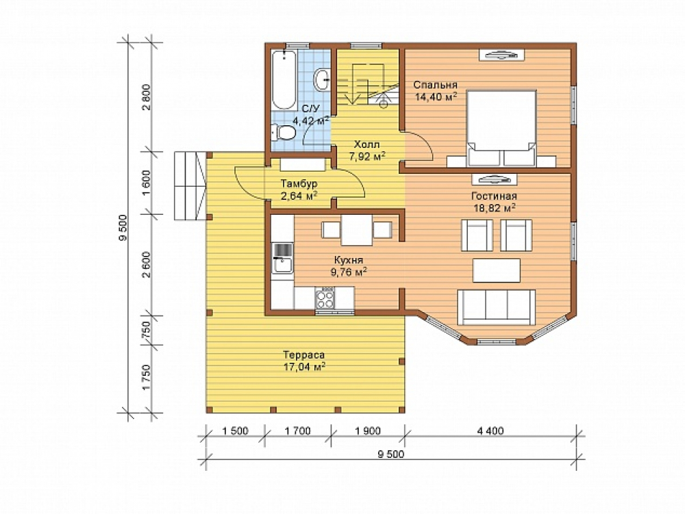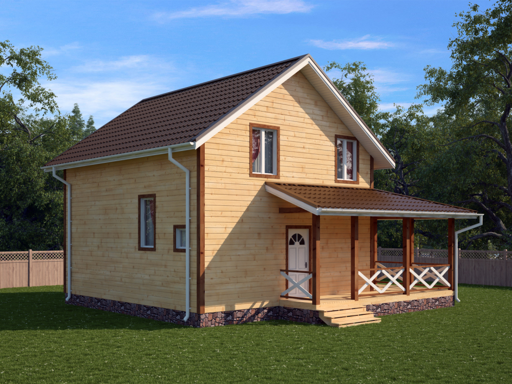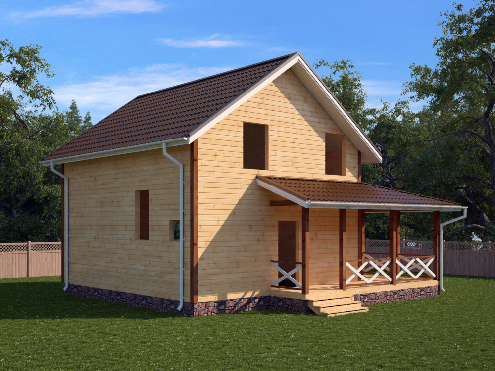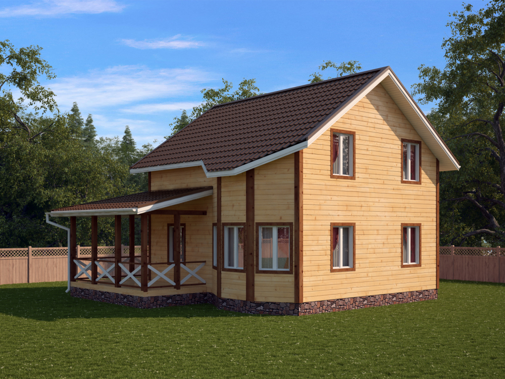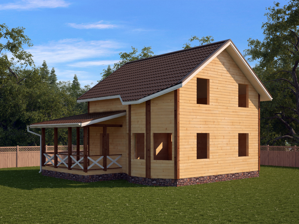 Проект двухэтажного дома Дом из бруса 9.5х9.5 под усадку с эркером и террасой
