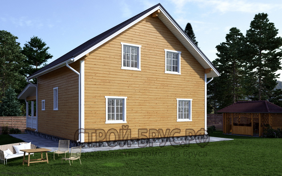 Его форма подчёркивает, что красота и функциональность неразделимы.Дом из бруса площадью 180 м² — просторное и комфортное жилье. Два этажа с четырьмя спальнями обеспечивают комфорт для всех жильцов. Открытая планировка первого этажа создает ощущение простора, а кабинет на втором этаже добавляет функциональности. Деревянные стены делают интерьер теплым и естественным.Характеристики