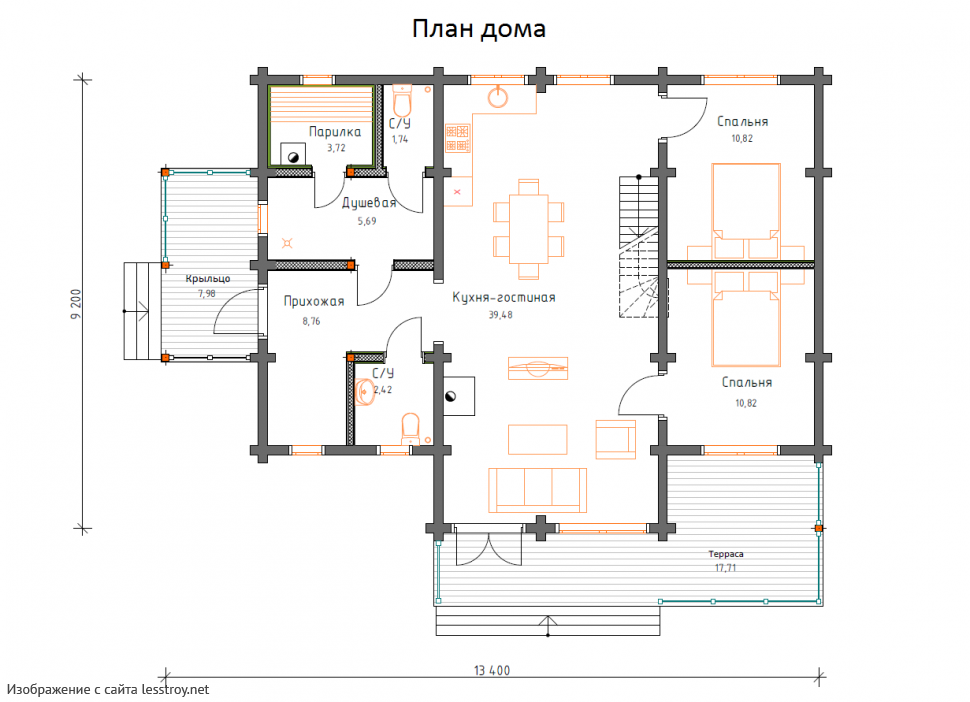 Проект двухэтажного дома Дом из бруса 9х13 ДБ-9