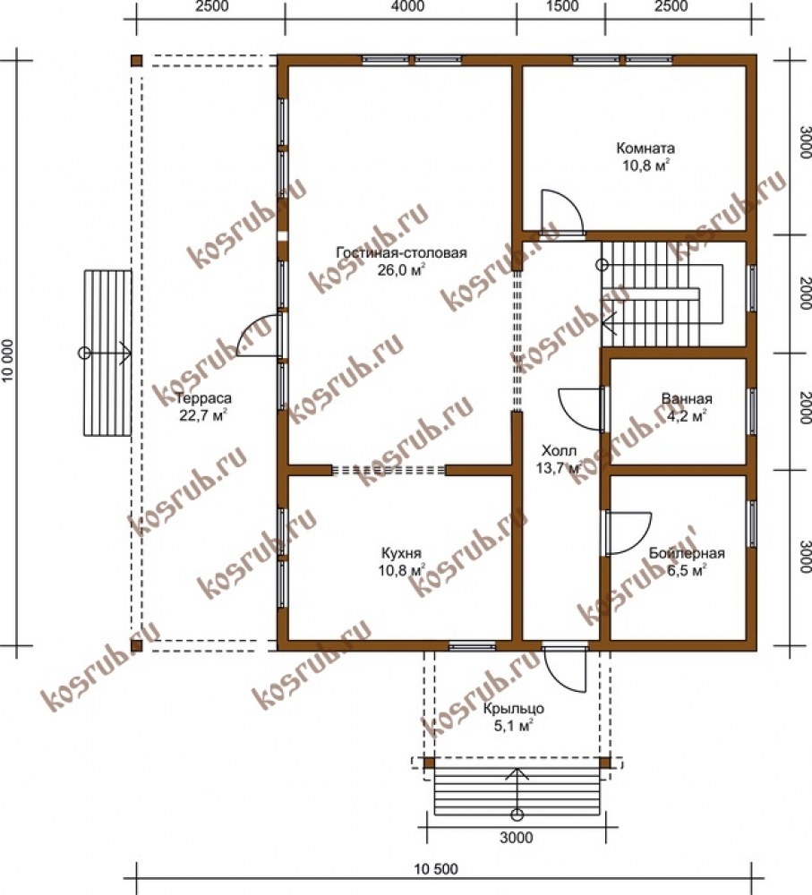 Проект одноэтажного дома Дом из бруса ДБ-51 проект Москва
