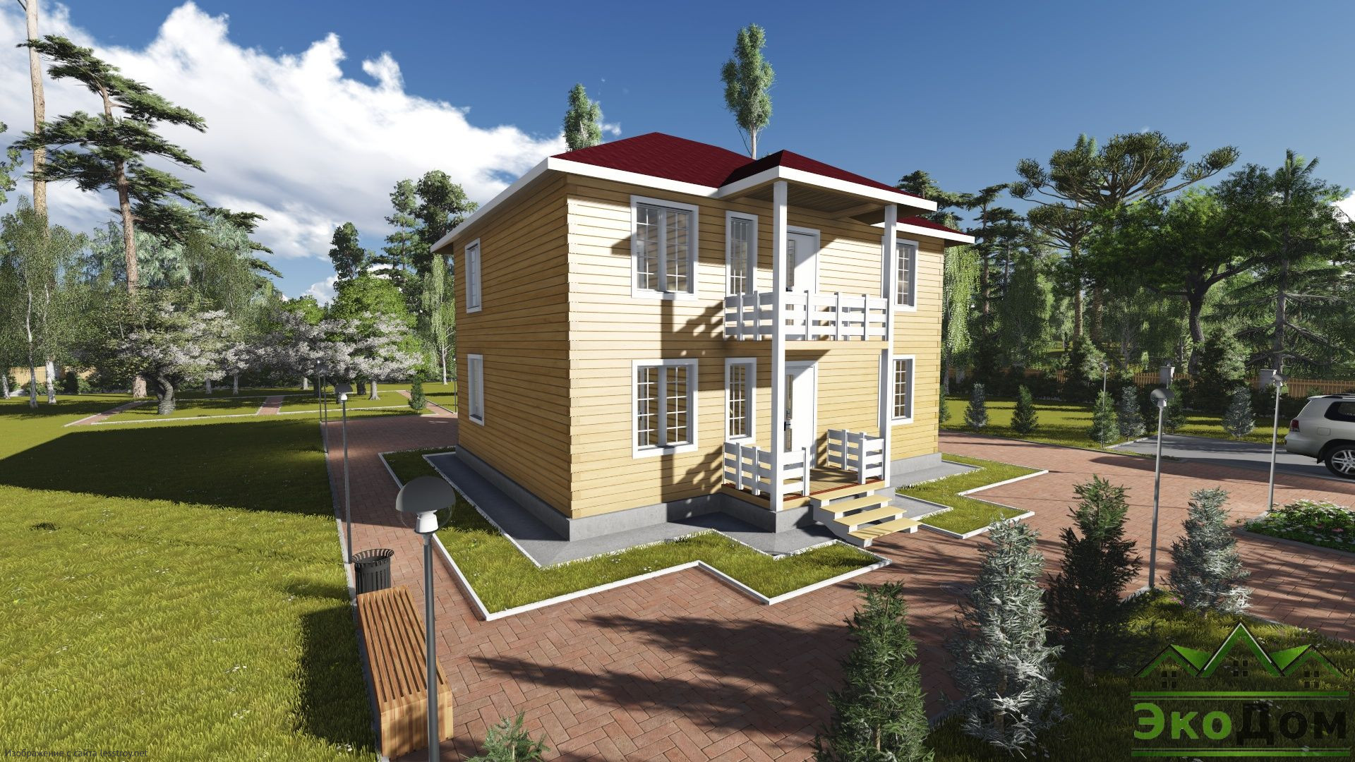 - Тип кровли: Дома с четырехскатной крышей (вальмовой)