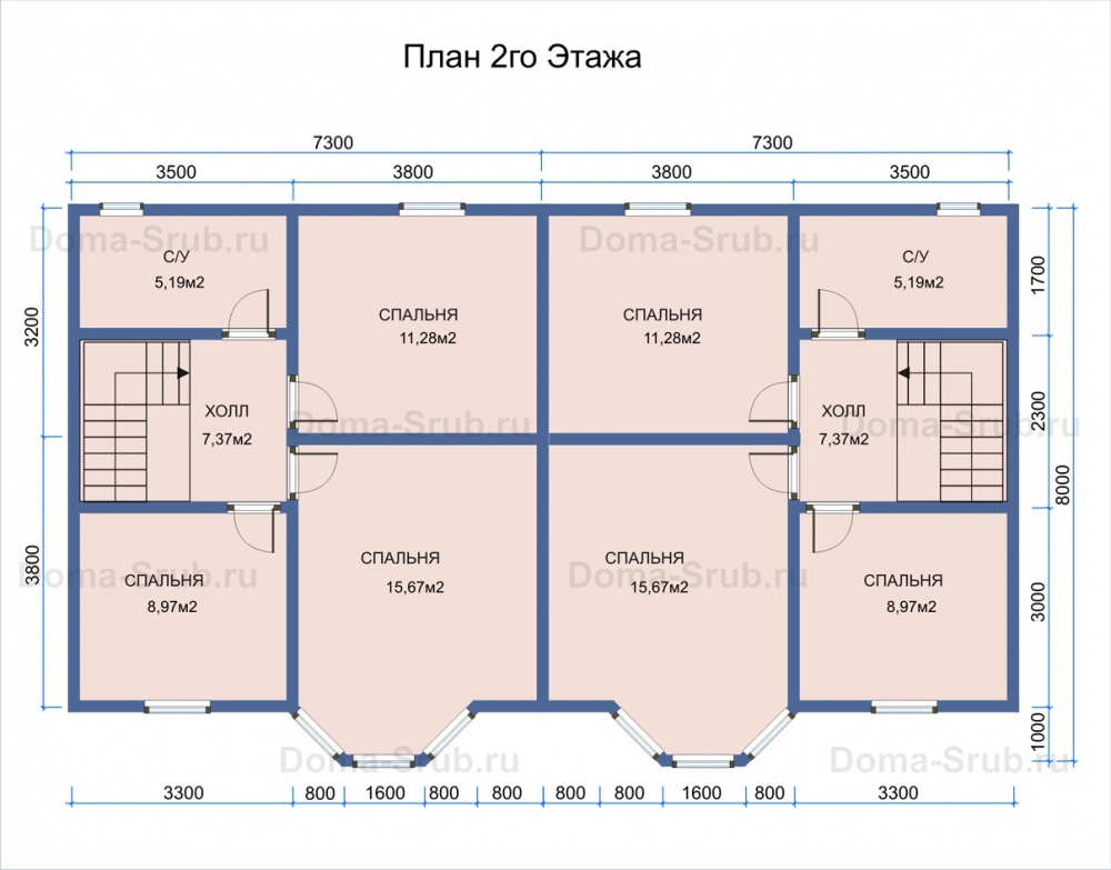 Проект двухэтажного дома Дом из бруса13,2x7,95 - проект ДБ-104