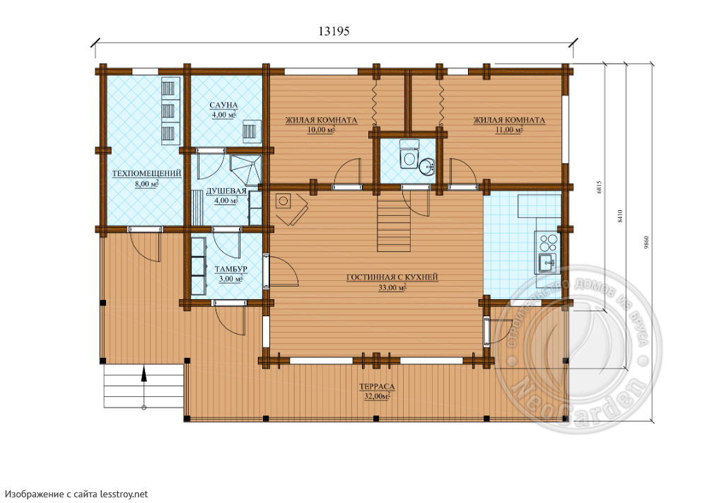 Брусовый дом площадью 135 м² сочетает в себе современный дизайн и традиционные материалы. Просторные помещения наполнены светом благодаря большим окнам. Дерево придает интерьеру особый шарм и уют. Проект подойдет для тех, кто ценит натуральность и комфорт.Характеристики