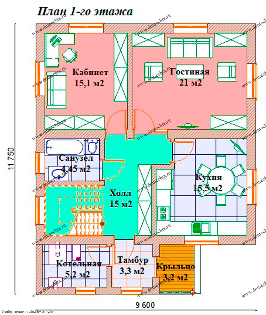 Проект двухэтажного дома Дом из газоблоков 149 м2