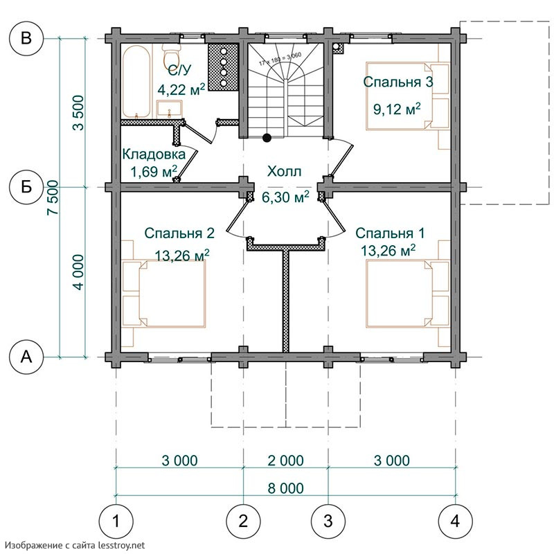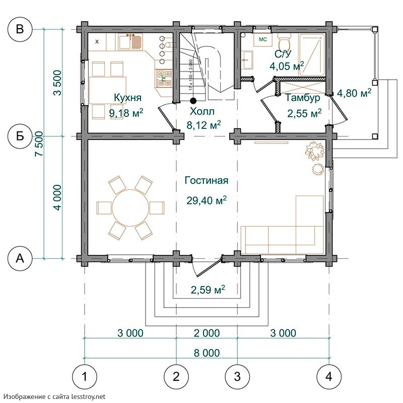 Проект одноэтажного дома Проект брусового дома 7,5х8,5 ДБ-74 Лесстрой