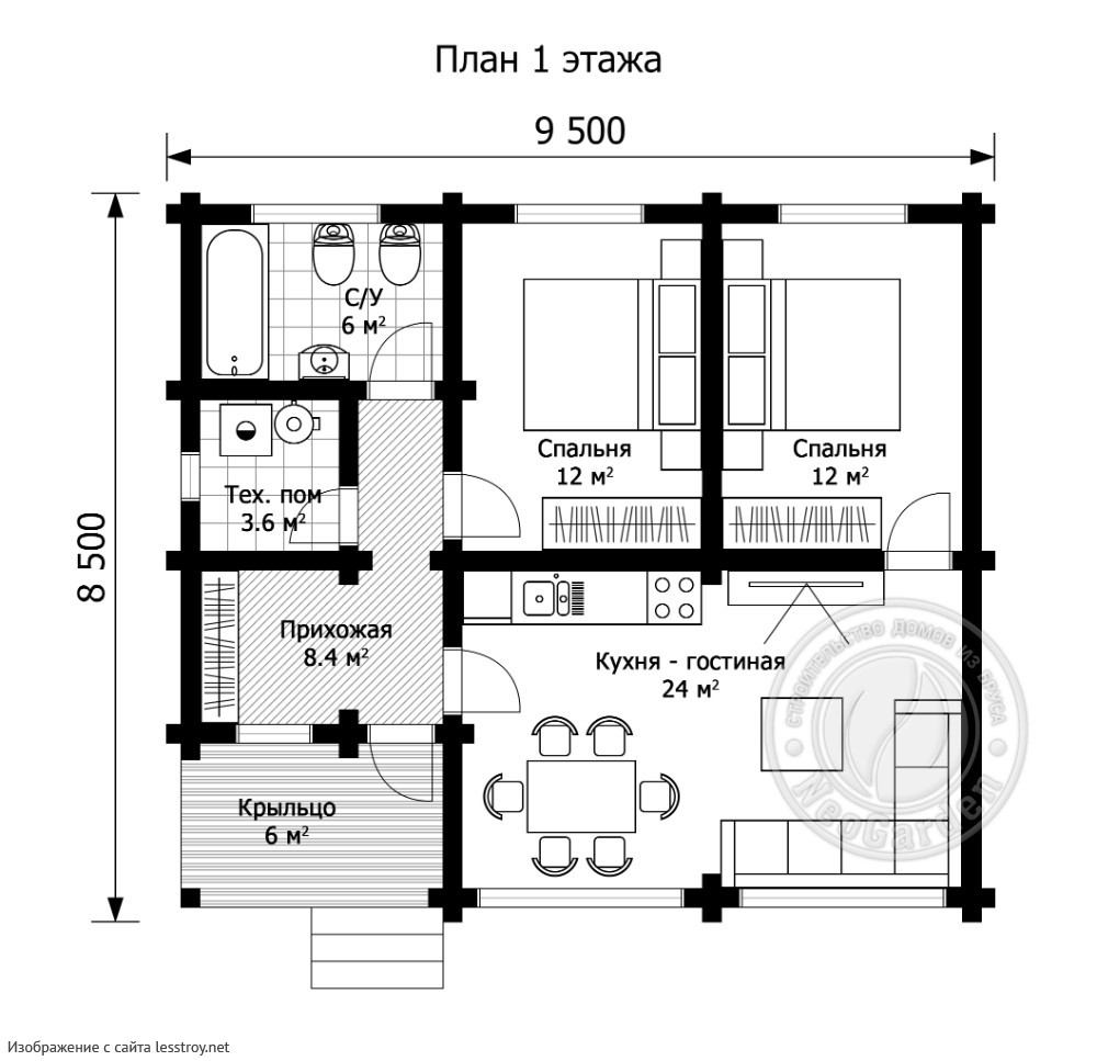 Проект одноэтажного дома Дом из клееного бруса Амадо