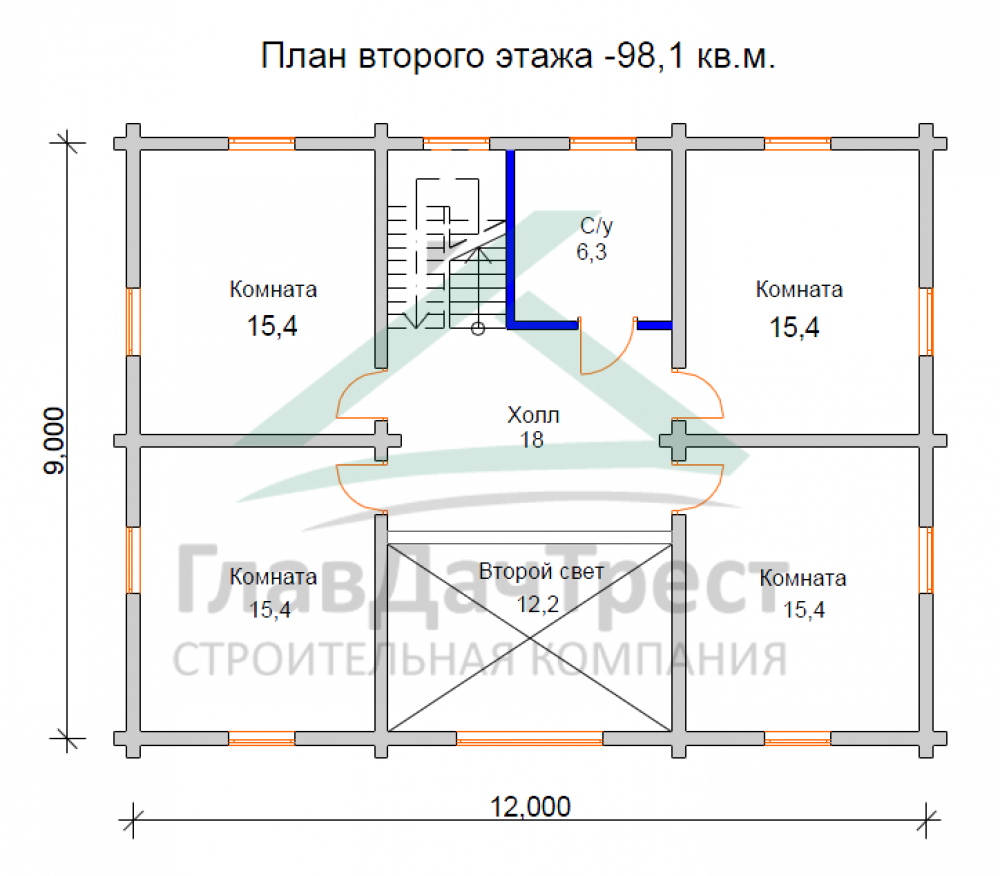 Проект двухэтажного дома Дом из клееного бруса «Марсель»