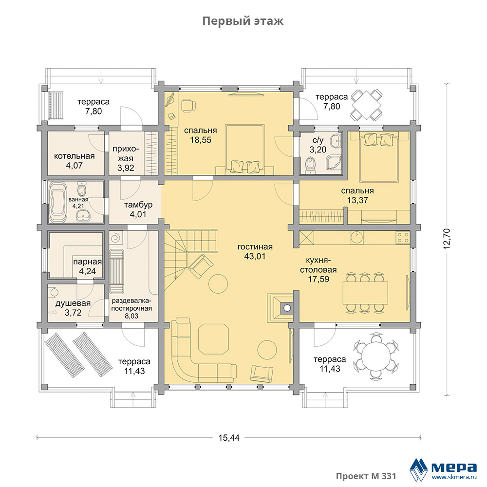 Проект двухэтажного дома Дом из клееного бруса по проекту М331