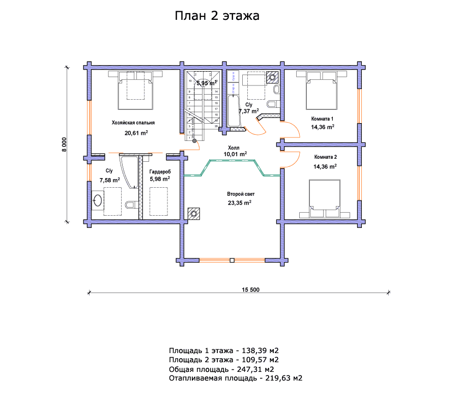 Проект двухэтажного дома Дом из клееного бруса «СВДом №99»