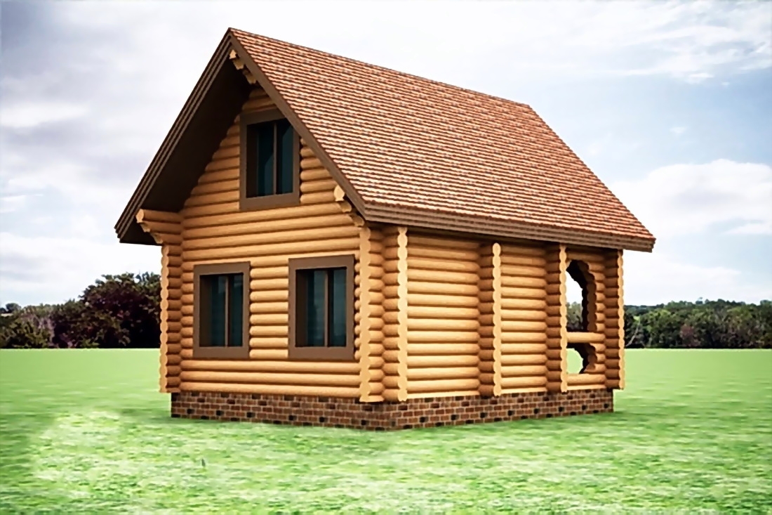 Проект двухэтажного дома Дом с мансардой из оцилиндрованного бревна СКАЗКА - 78м2 (7м х 5,5м)