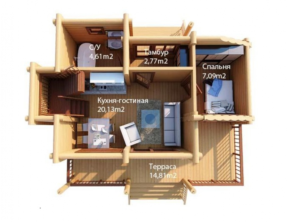 Проект двухэтажного дома Дом из оцилиндрованного бревна Б-105