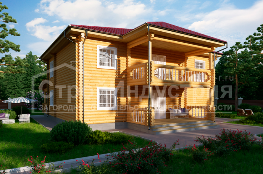 Проект двухэтажного дома Дом из оцилиндрованного бревна D008-2