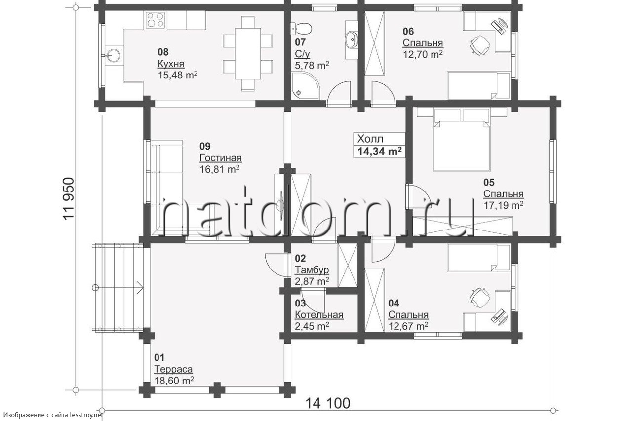 Проект одноэтажного дома Дом из оцилиндрованного бревна ДК-110
