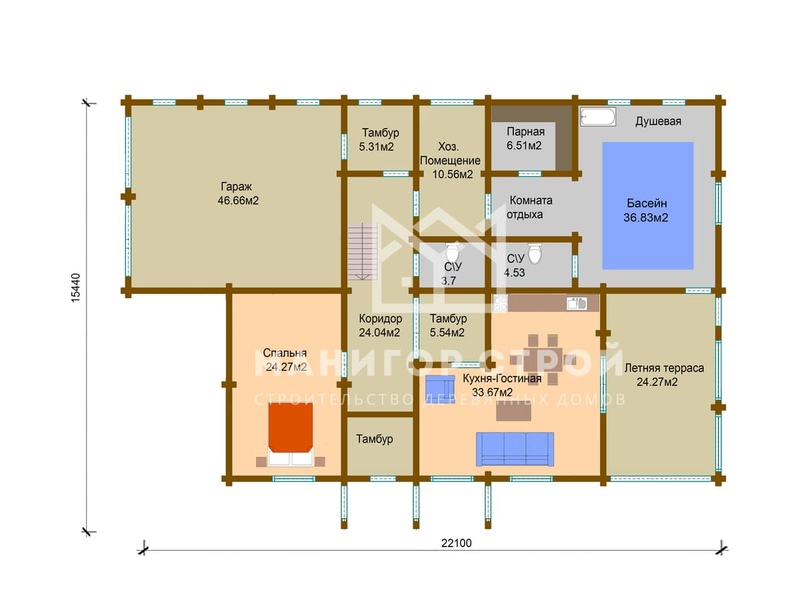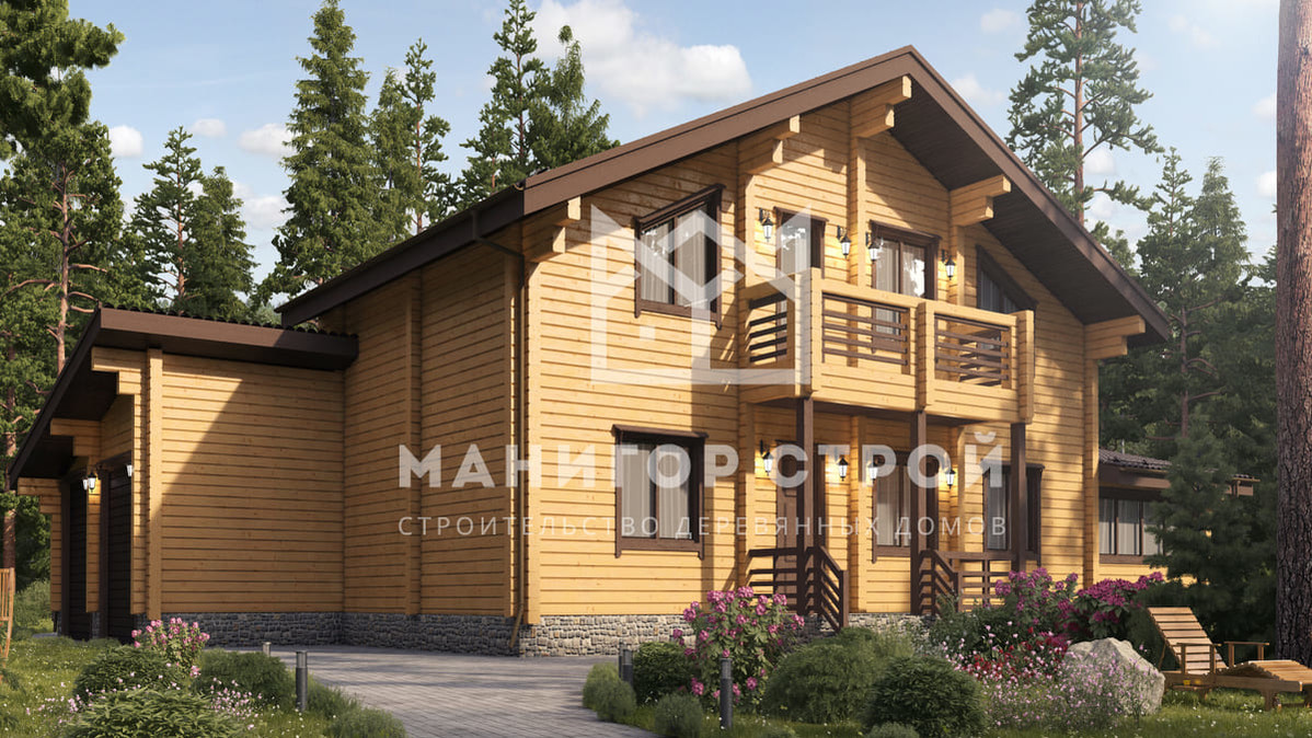 Проект, в котором будущее уютно, как бабушкин плед.С такими 333 м² возможна любая конфигурация комнат. Конструкция из бревна обеспечивает прочность и долговечность. Двухэтажная современная планировка обеспечивает комфортную навигацию внутри дома. В качестве кровли использована рубероид — материал, проверенный временем.Характеристики