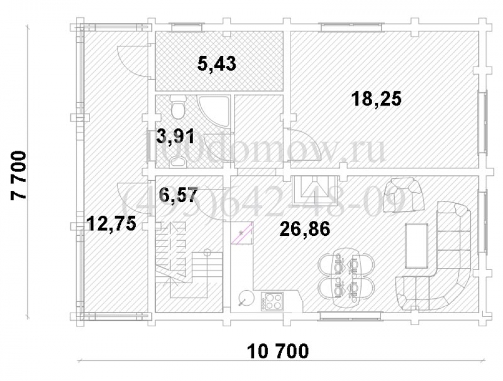 Проект одноэтажного дома Дом из оцилиндрованного бревна. Проект Серпухов.