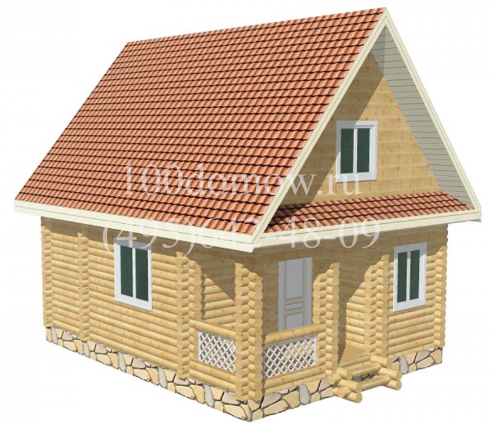 Проект одноэтажного дома Дом из оцилиндрованного бревна с мансардой. Проект Звенигород