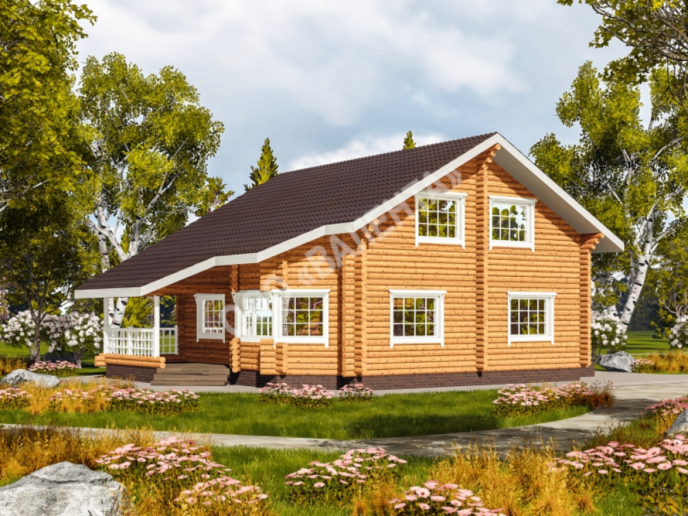 Проект двухэтажного дома Дом из оцилиндрованного бревна Темьянь