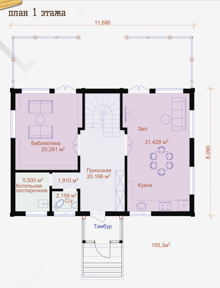 Проект двухэтажного дома ДОМ ИЗ ПРОФ.БРУСА 11,6 НА 8