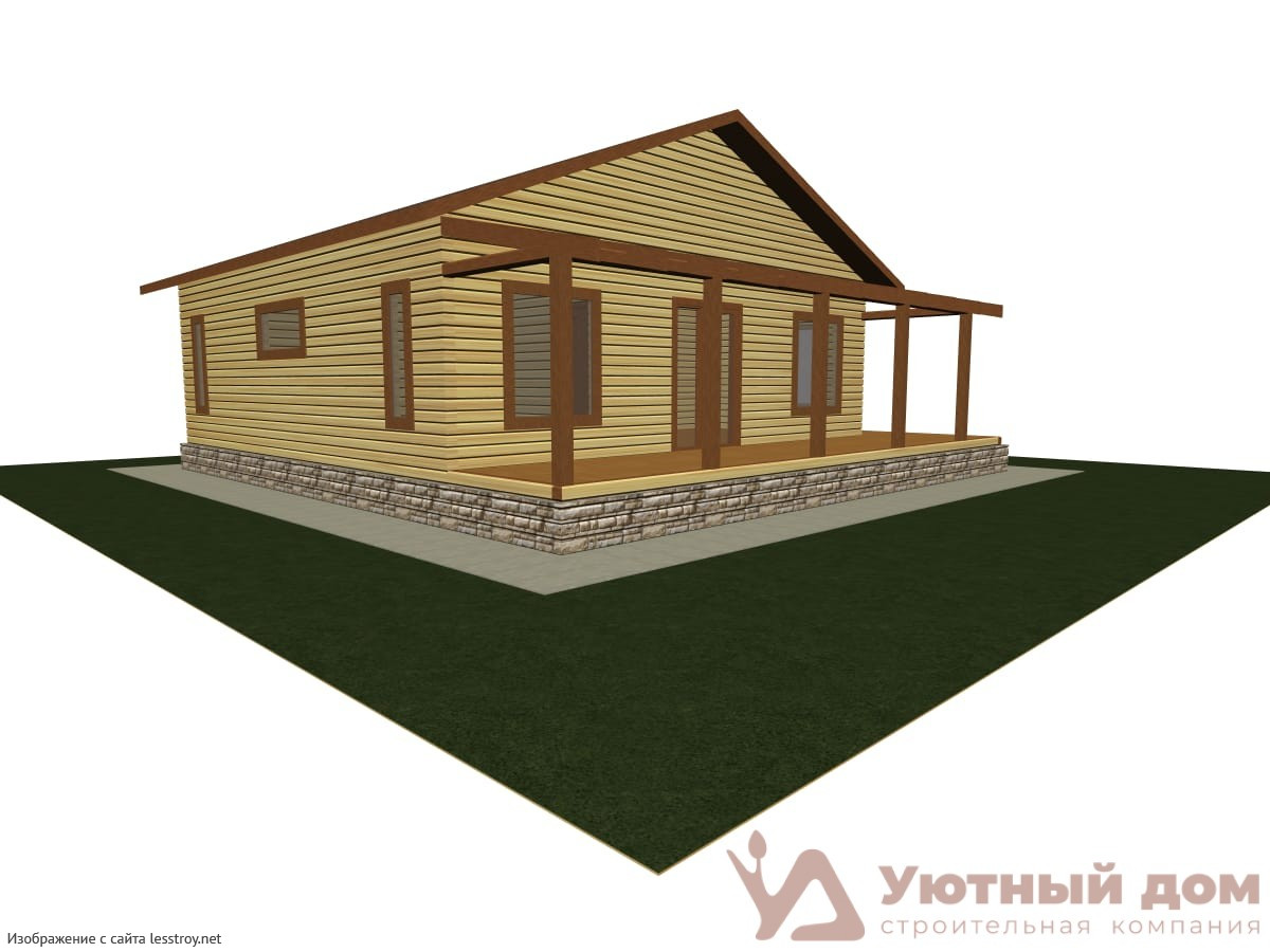 Уютный дом площадью 80 м² из профилированного бруса с двумя спальнями отличается практичностью. Один этаж обеспечивает удобство и компактность. Натуральные материалы создают здоровый микроклимат. Проект подойдет для дачного или временного проживания.Характеристики