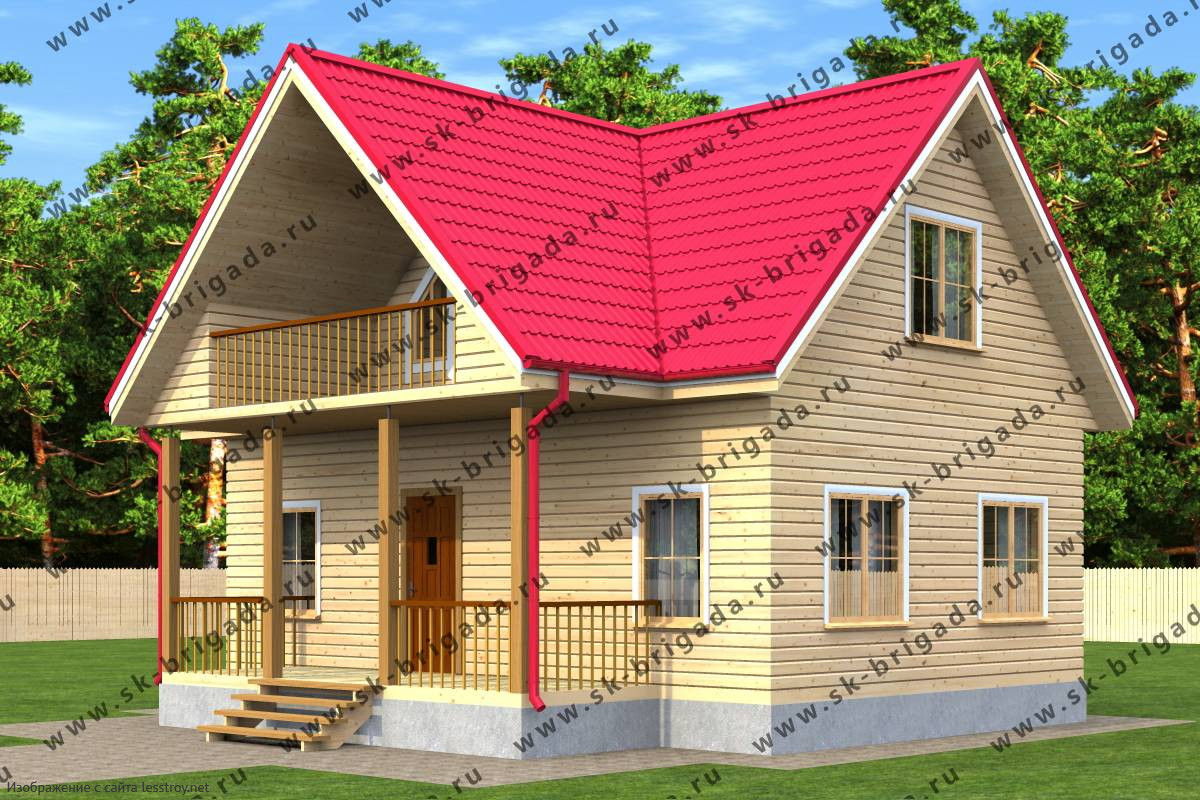 Проект двухэтажного дома Дом из профилированного бруса 8х9 метров с мансардой