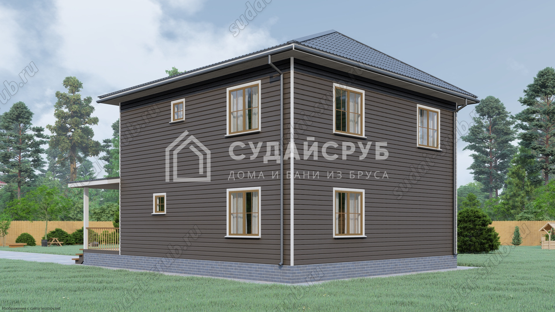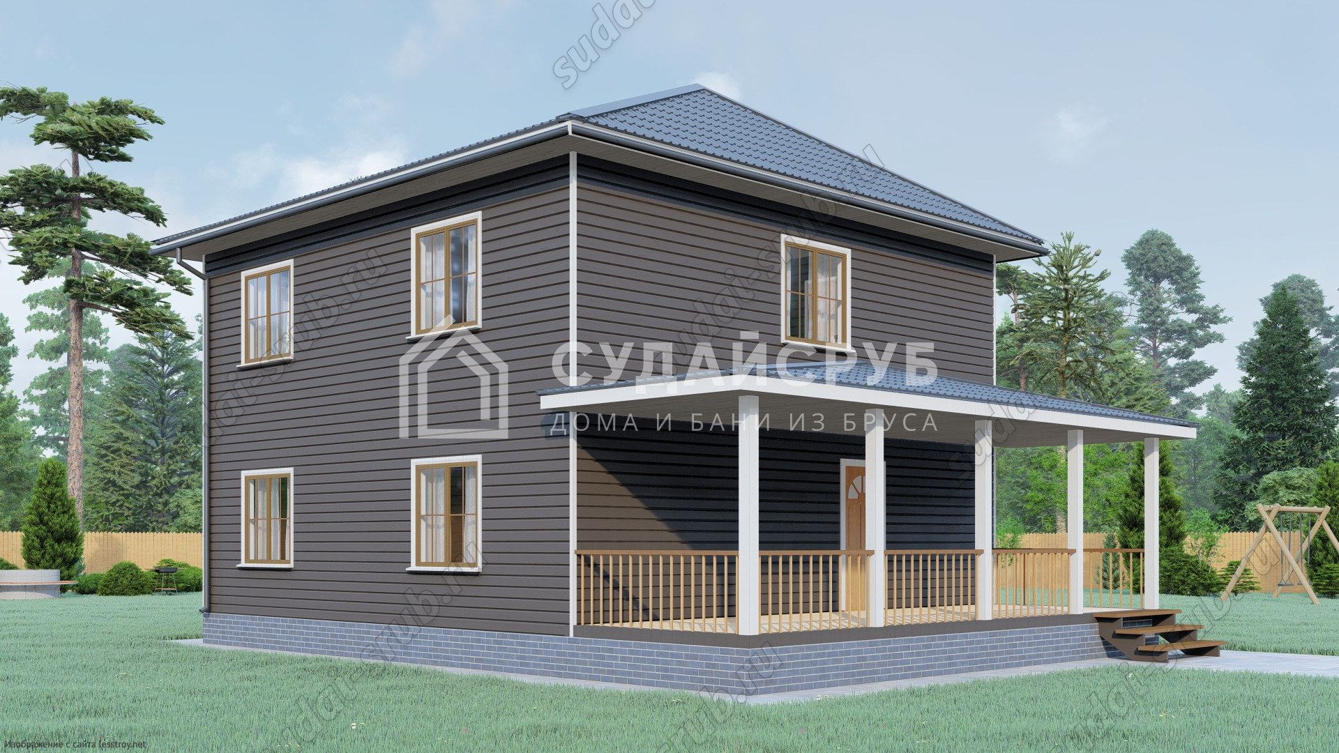 - Тип кровли: Дома с четырехскатной крышей (вальмовой)