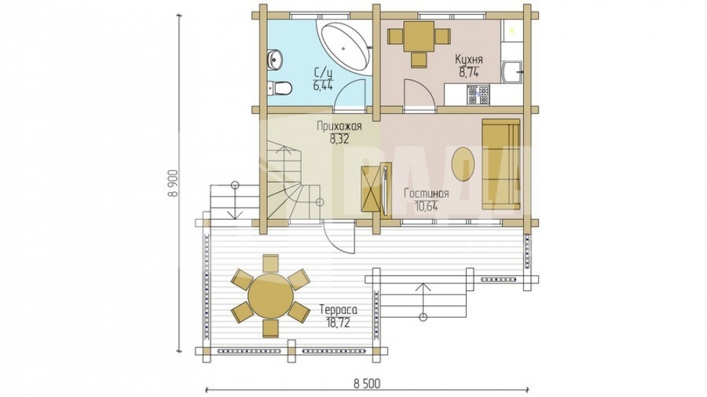 Проект двухэтажного дома Дом 6х8 м с мансардной крышей и кухней-гостиной