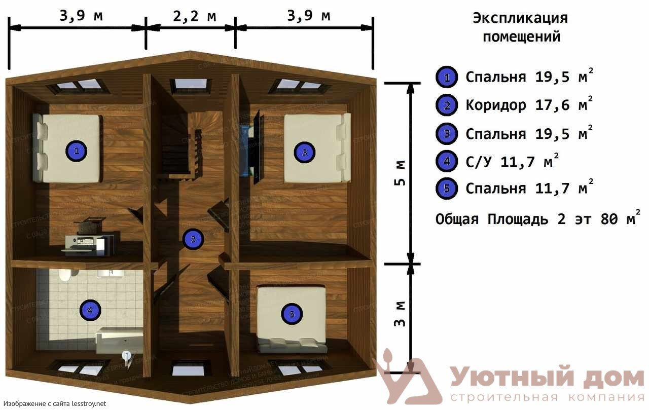 Проект двухэтажного дома Дом из простого бруса 150х150 по проекту № 054