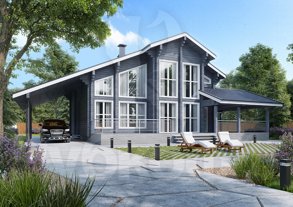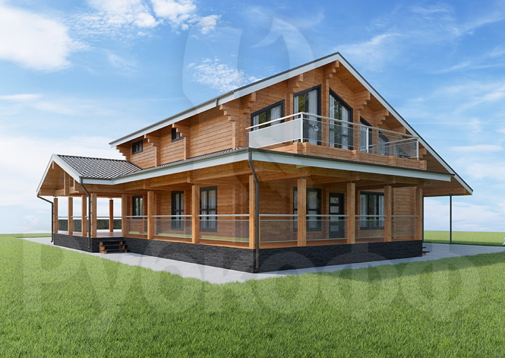 Величественный дом из клееного бруса площадью 381 м² с четырьмя спальнями воплощает роскошь. Рубероидная кровля и финский стиль подчеркивают его статус.Характеристики