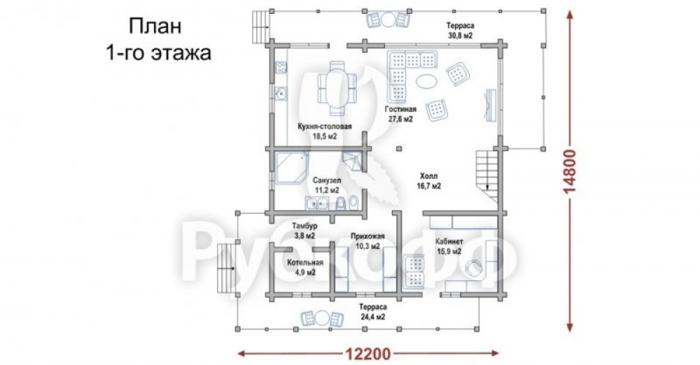 Проект двухэтажного дома Проект дома из клееного бруса CKD-235