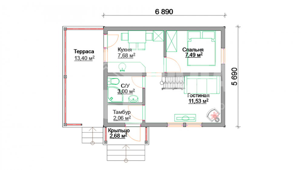 - Общая площадь: 69 м2