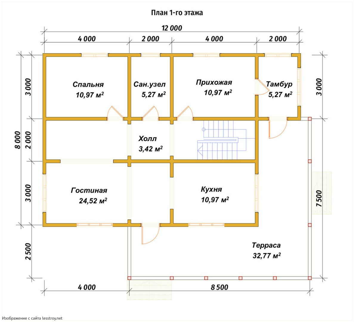 Проект двухэтажного дома Дом-шале из бруса по проекту ПатриархЪ