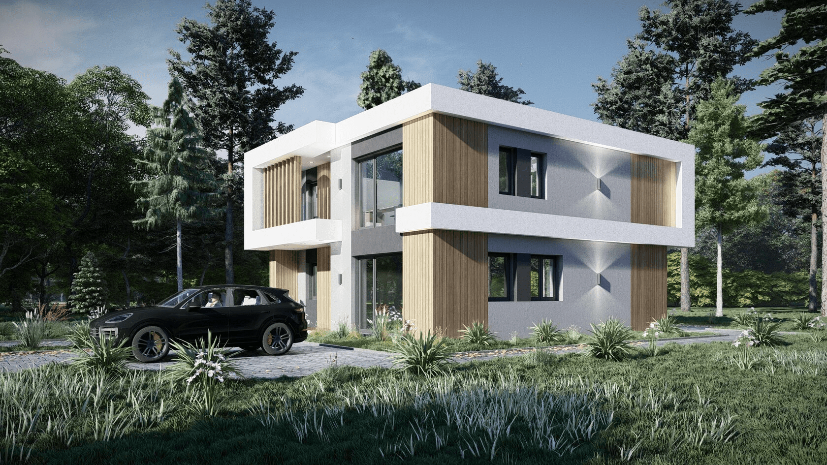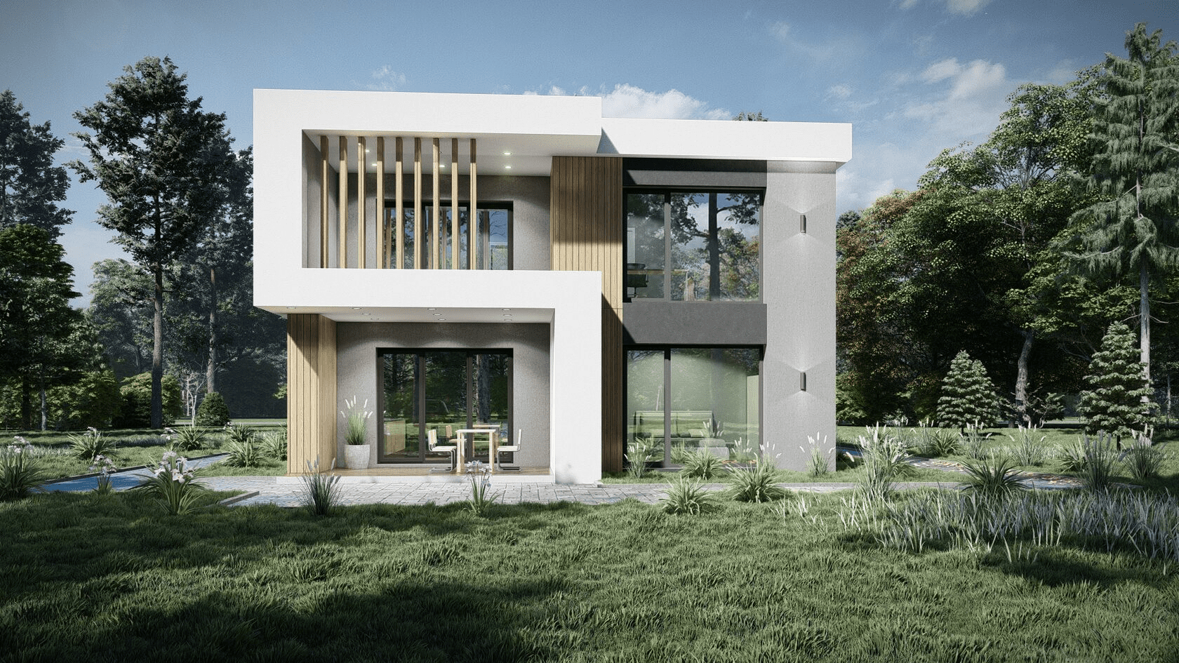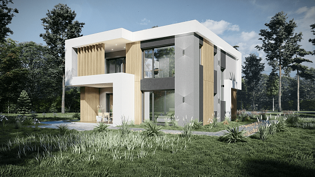 Проект двухэтажного дома Дом за 100 дней. Двухэтажная версия. Плоская кровля.