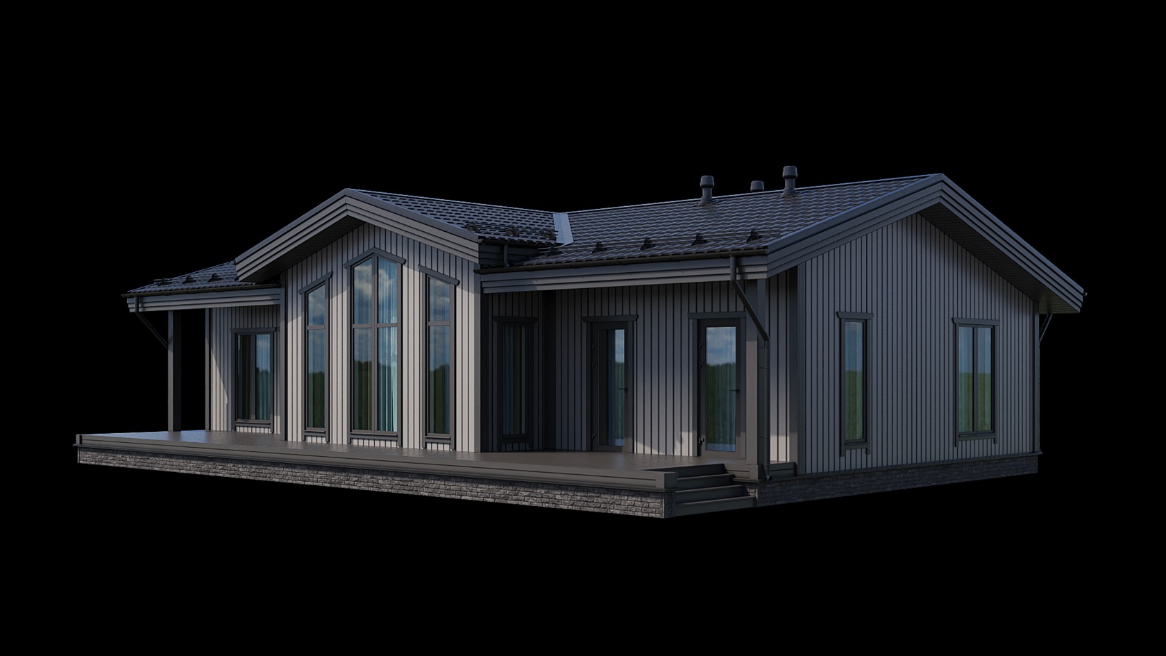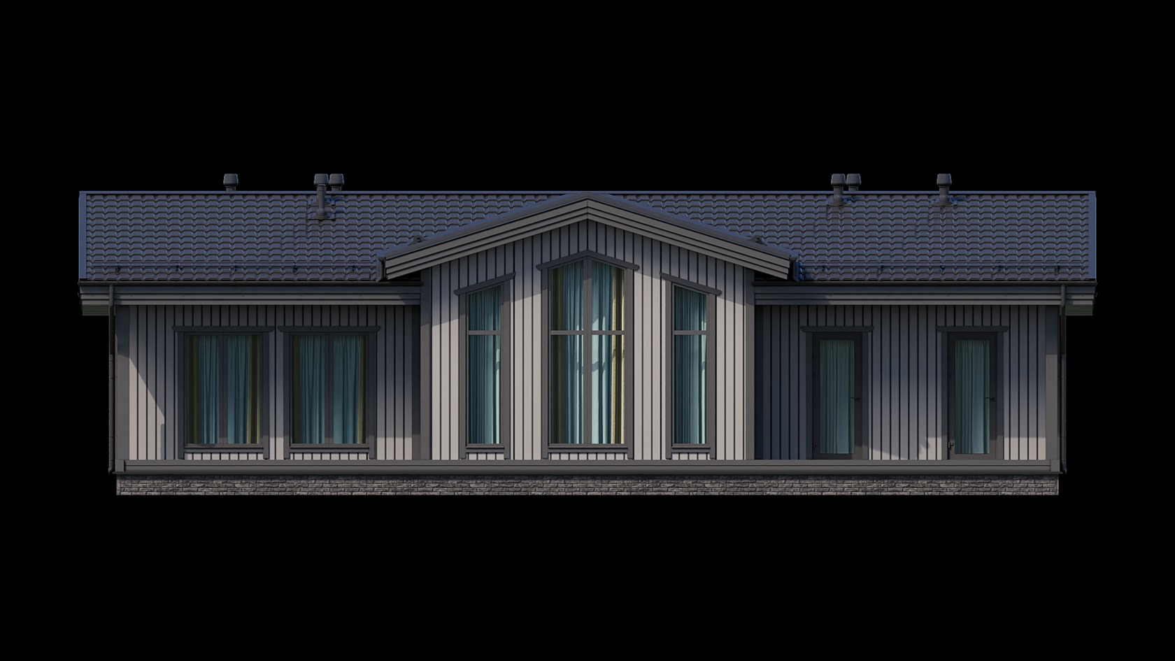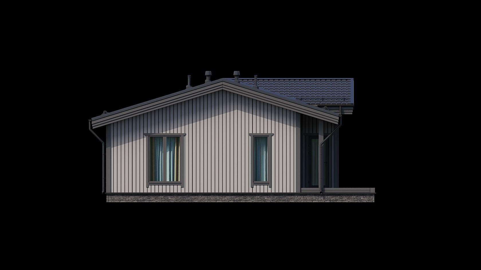 - Вентиляция: В кровле устанавливаются вентиляционные выходы в цвет кровли. Место установки определяется с Заказчиком на монтаже. Вентиляционные выходы монтируются без сборки шахт и последующего проведения внутри дома. Чердачное помещение со стороны фронтонов устанавливаются вентиляционные решетки, цвет белый.