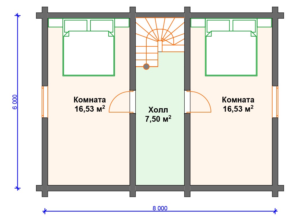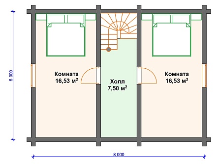 - Межэтажное перекрытие: Выполняются из бруса 50х150 мм. ( Возможна замена на 50х200 мм., или двутавровые балки ).