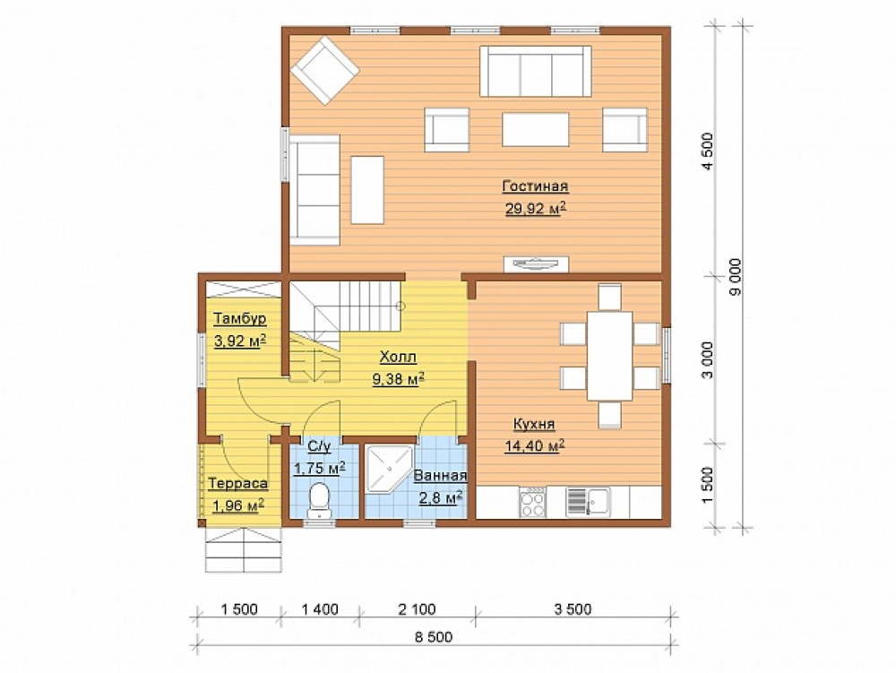 Дом, в котором хочется собирать друзей и создавать воспоминания. Рационально распределённые 63 м² делают жильё удобным. Стены из каркаса хорошо держат тепло и защищают от шума. Дом спроектирован в духе дома в классическом стиле. Двухэтажная уютная планировка обеспечивает практичное распределение комнат.Характеристики