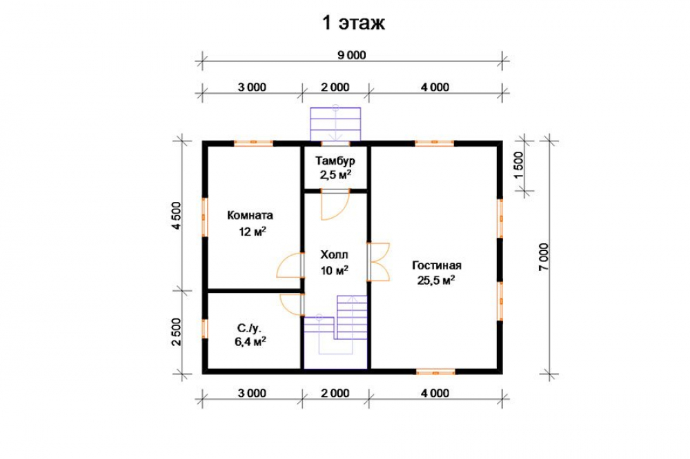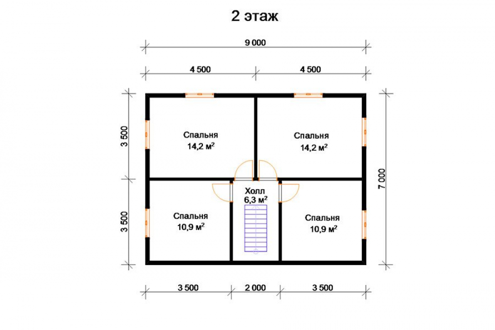Проект двухэтажного дома Двухэтажный дом из бруса 7х9 под усадку