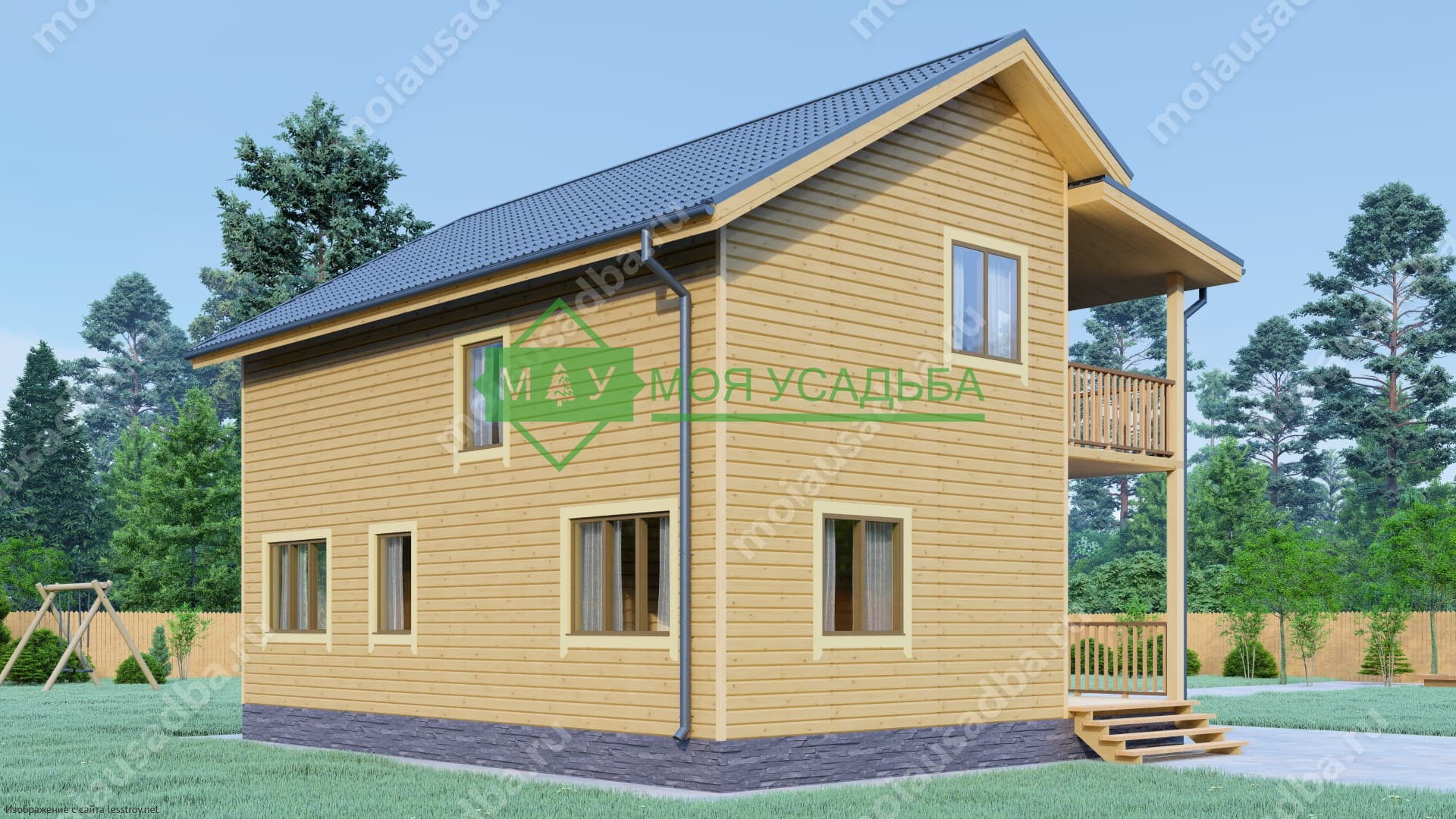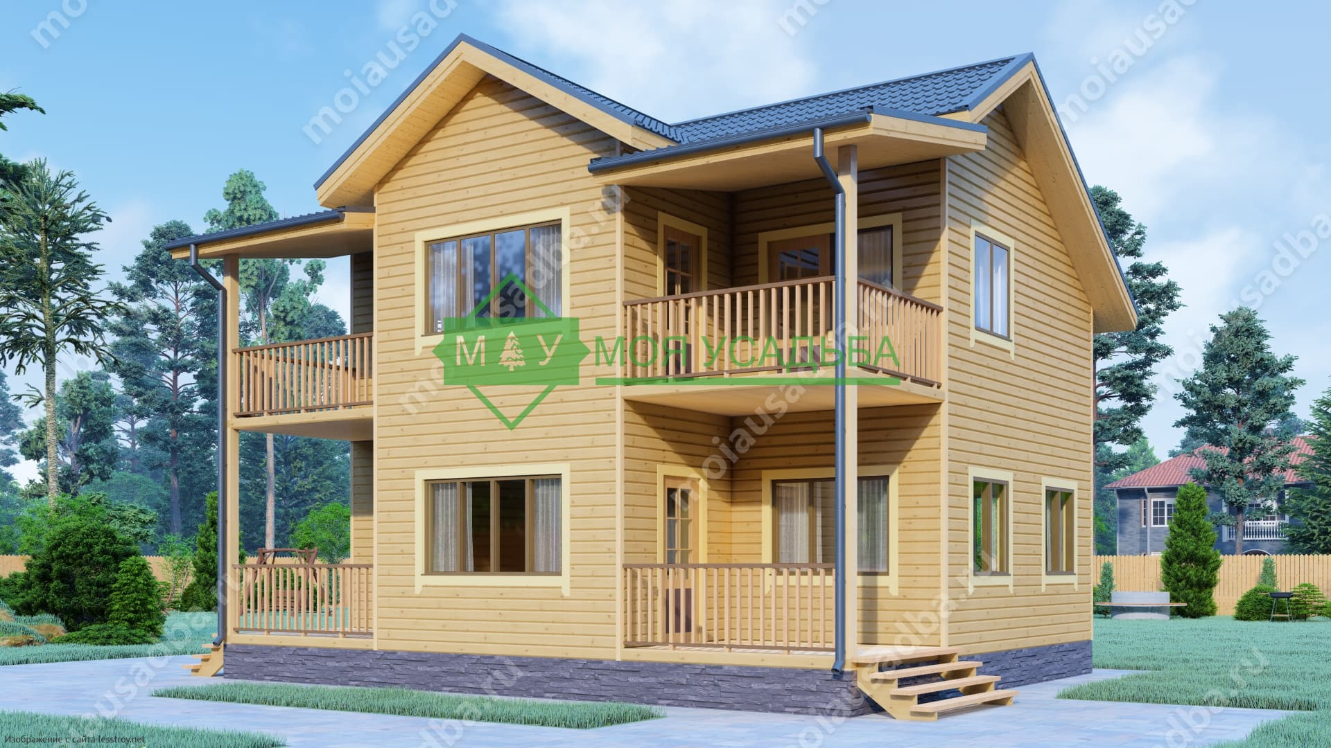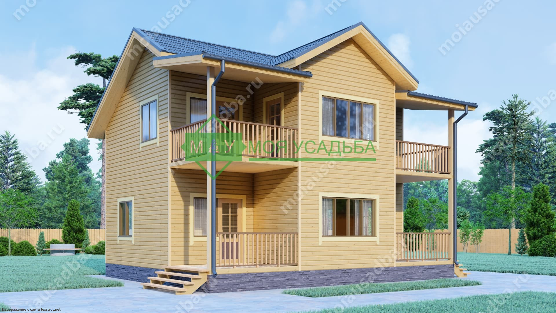 Проект двухэтажного дома Двухэтажный дом из бруса 8х10 с террасой проект ДБ-92