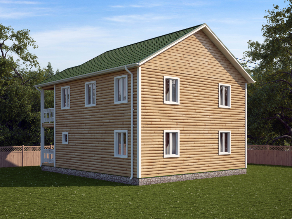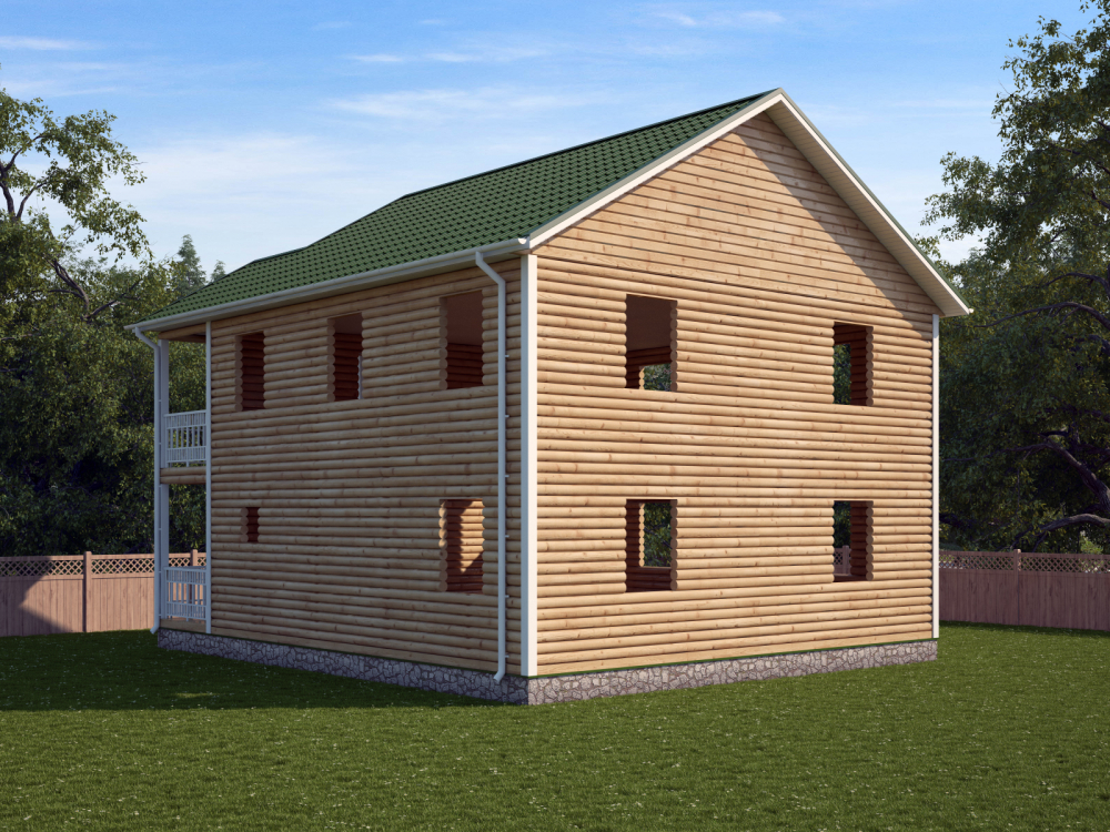 Проект двухэтажного дома Двухэтажный дом из бруса 9х9 под усадку терраса+балкон