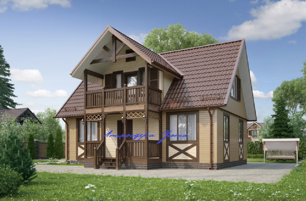 Проект двухэтажного дома Дом из клееного бруса с террасой и балконом. Проект Светово.