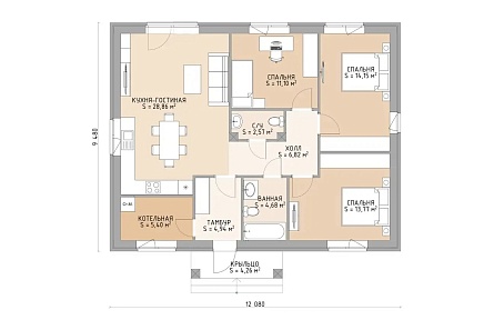 - Покрытие - профиль декоративный Монтерра-X по деревянным стропилам, с защитой от гниения и возгорания