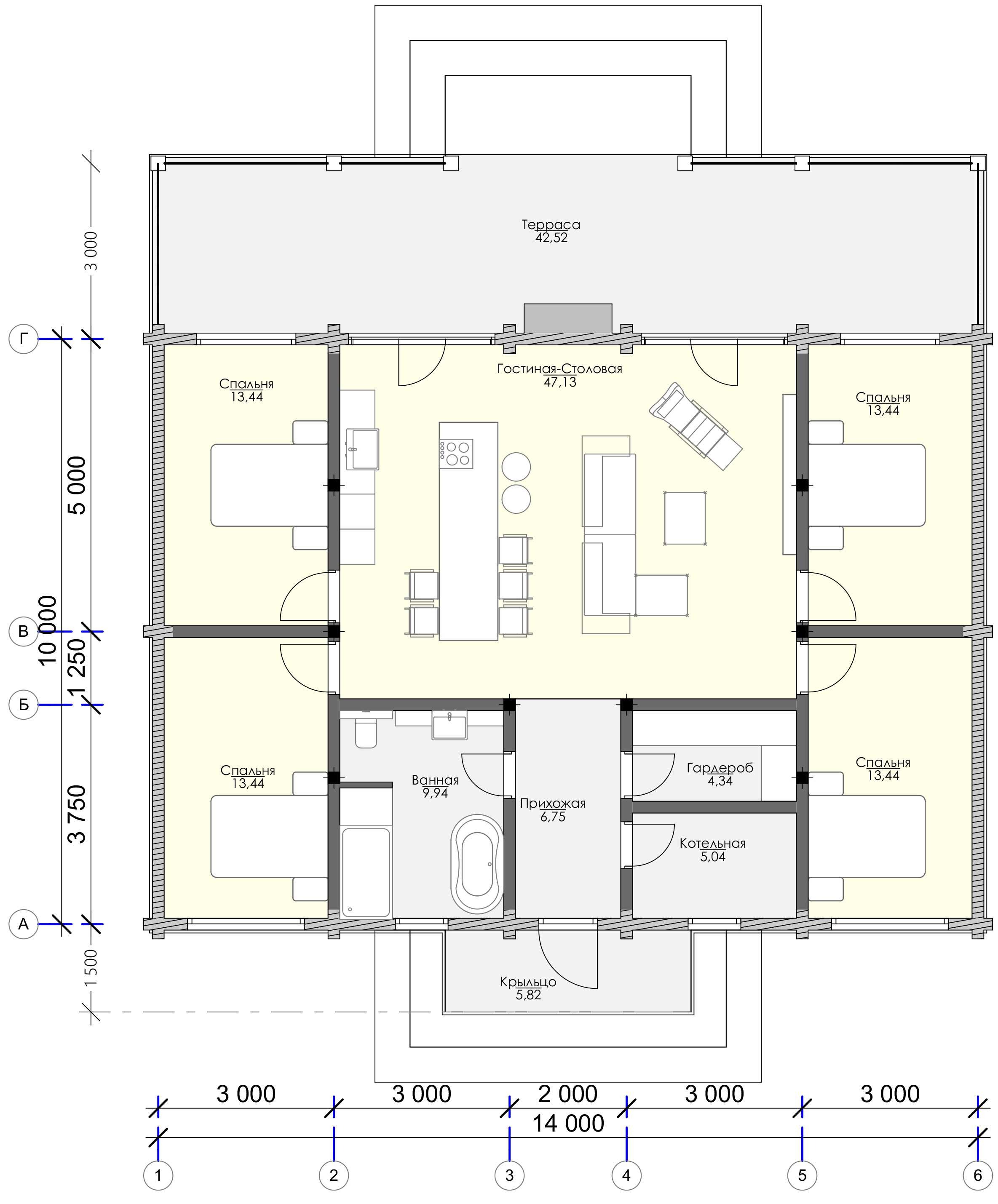 Просторный дом Эдинбург площадью 189 м² с жилыми 121 м² — воплощение стиля и комфорта. Брус в стенах наполняет интерьер теплом, а натуральная черепица на крыше добавляет надежности. Четыре спальни и санузел обеспечивают удобство для большой семьи. Свайный фундамент подчеркивает устойчивость этого жилья.Характеристики